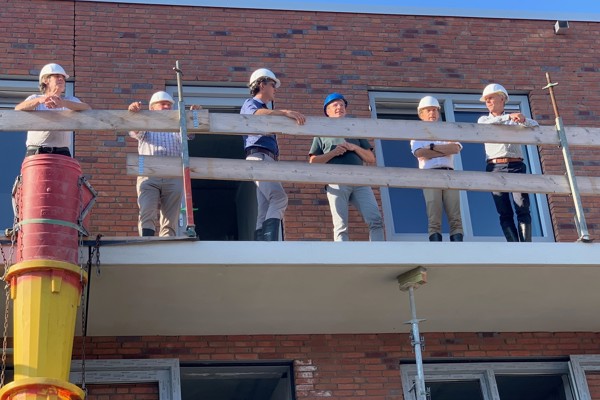 De raad van commissarissen (rvc) van l'escaut bracht op 8 september een bezoek aan de bouwplaats Ravesteynplein. De raad van commissarissen (rvc) houdt toezicht op het bestuur van l’escaut. En kijkt mee met keuzes, doelstellingen en prestaties van l’escaut op verschillende terreinen. De raad kreeg een toelichting over de nieuwbouw en de verhuur van de verschillende soorten woningen. De raad was onder de indruk van de diversiteit, ruimte en het proces.
