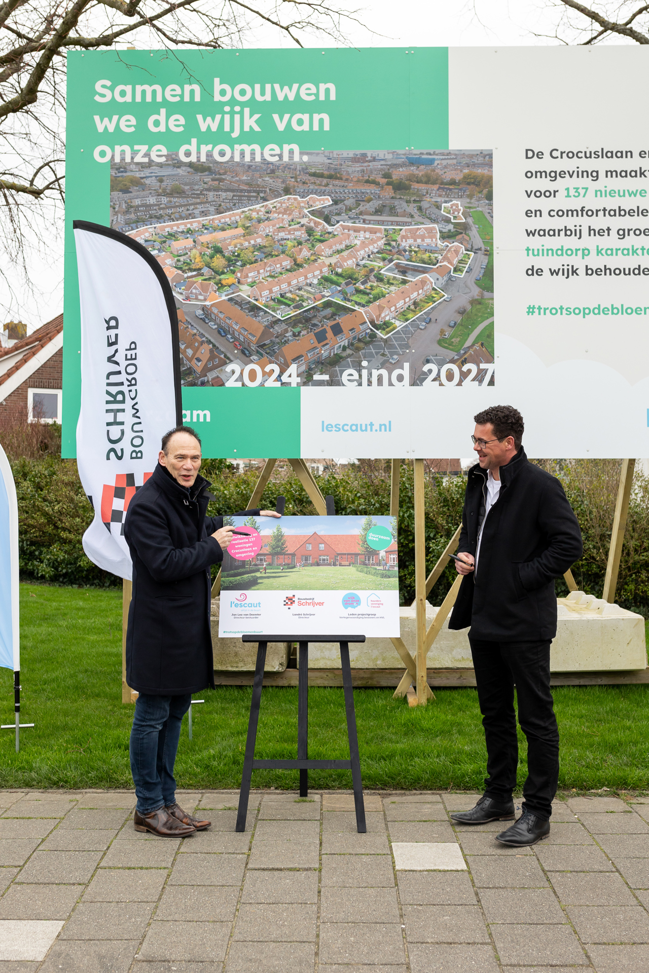 Dinsdagmiddag 20 februari tekenden l’escaut en Bouwbedrijf Schrijver samen met de leden van de projectgroep de overeenkomst voor de nieuwbouw in de Crocuslaan. Deze ondertekening is weer een nieuwe stap vooruit naar de wijk van onze dromen!