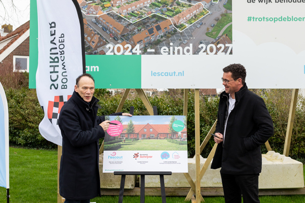 Ook Landré Schrijver, directeur van Bouwbedrijf Schrijver is heel blij dat zij de woningen gaan bouwen. "We zijn zelfs een beetje trots dat wij geselecteerd zijn en dit te mogen realiseren voor de toekomstig bewoners. Het is een kroon op het werk als je ziet hoe enthousiast bewoners zijn, dat is heel mooi en daar doen we het voor. Wij zeggen heel vaak: we doen dit met een glimlach, voor een glimlach bij de bewoners. We hopen dat dit mooie plan, nu nog getekend, maar straks ook echt gerealiseerd is. En dat de dromen van de bewoners uiteindelijk ook uitkomen!”
