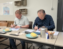 Dinsdagochtend 25 juni tekenden we met Bouwbedrijf V&V Bouw de overeenkomst voor de nieuwbouw in de Verkuijl Quakkelaarstraat