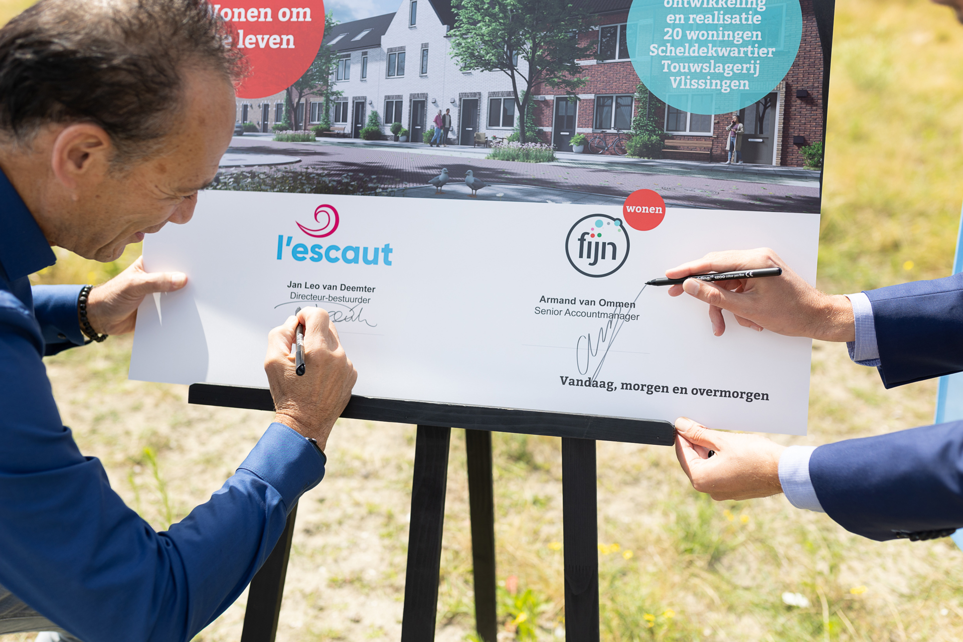 Fijn Wonen en l'escaut tekenen overeenkomst voor bouw 20 eengezinswoningen De Touwslagerij in de Scheldewijk