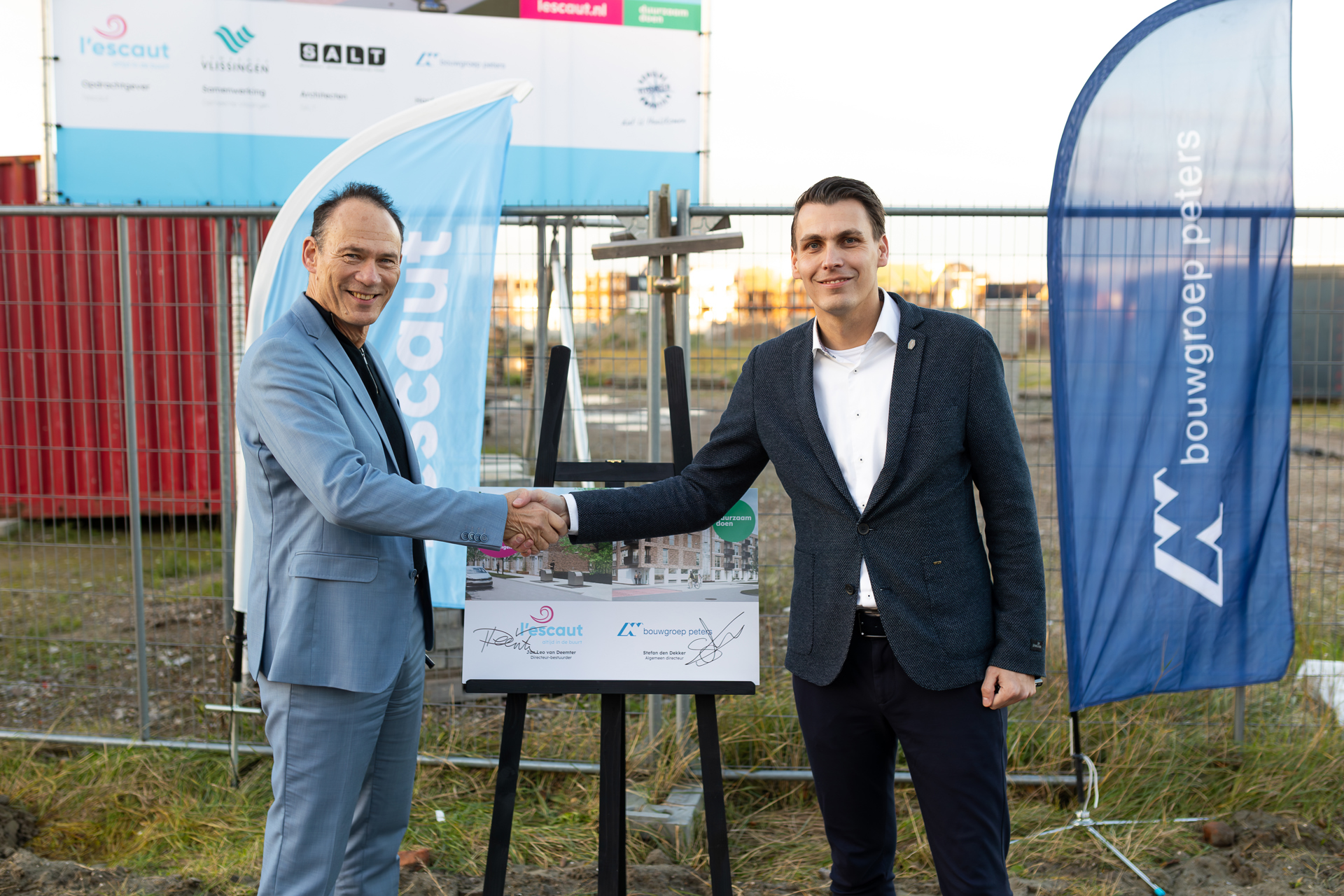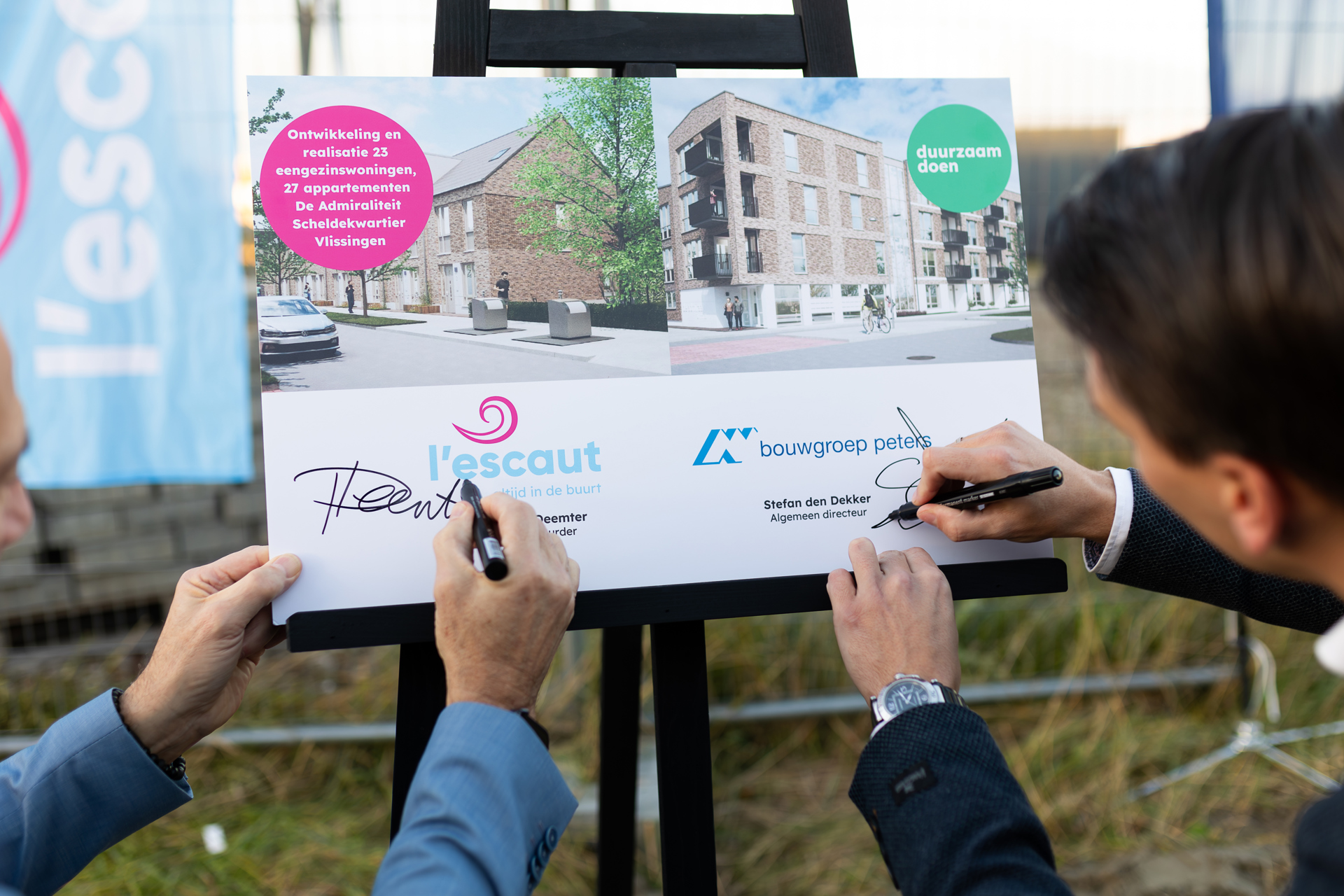 l’escaut en Bouwgroep Peters tekenen overeenkomst voor bouw woningen De Admiraliteit in de Scheldewijk