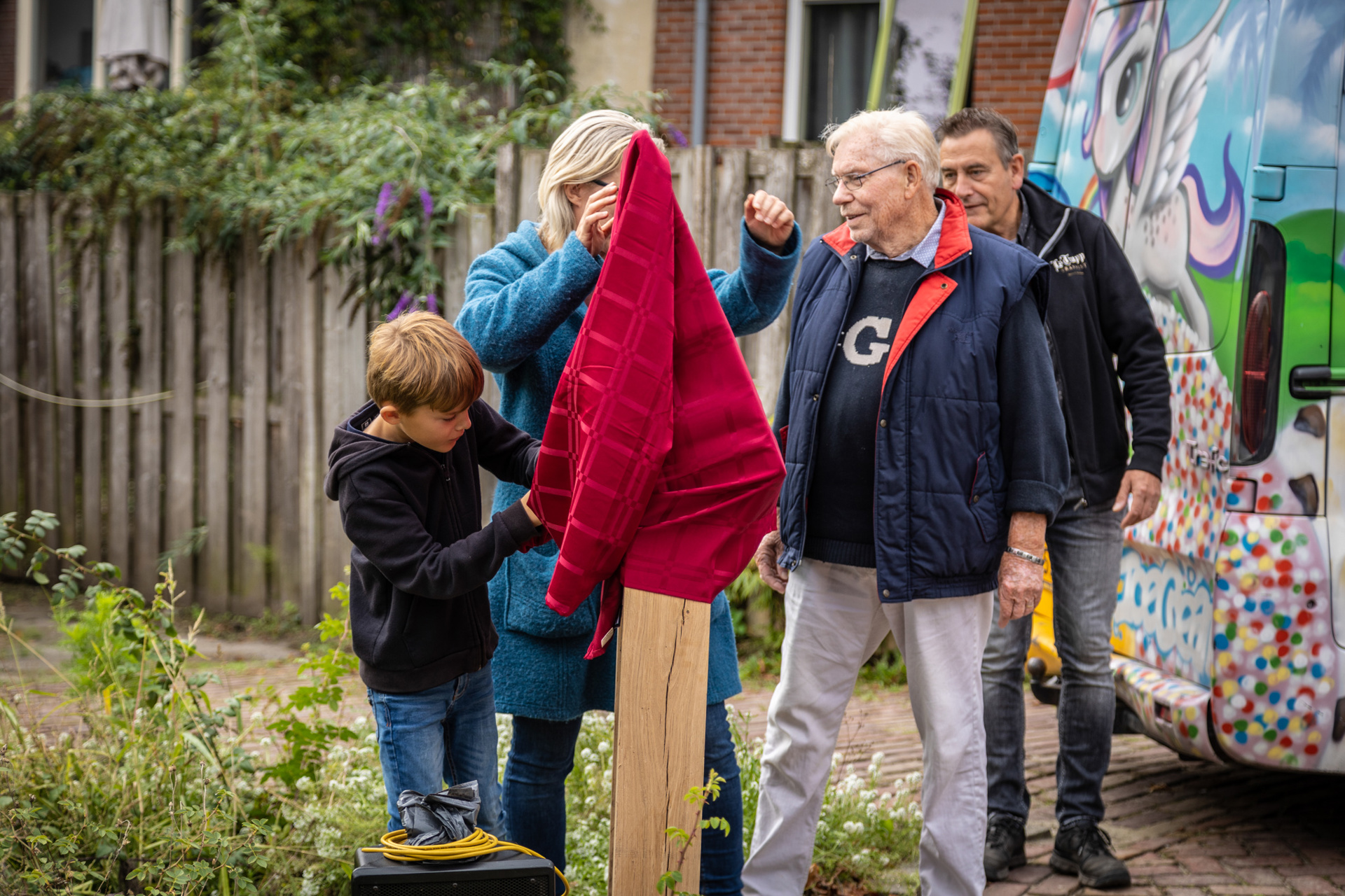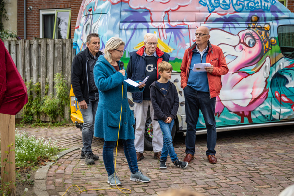 De tuin kon eerst bewonderd worden onder het genot van een broodje, verzorgt door La Bella Cucina. Ank Muller van de Huurdersvereniging l'escaut en Meri Berndes van l'escaut hielden een toespraak over de historie van de tuin, het belang van biodiversiteit en de sociale samenhang in de wijk. Het informatiebord is onthuld door een bewoner van Scheldehof en een leerling van de Ichtusschool. Hierna zongen de groepen 4, 5 en 6 van de Ichtusschool het Gi-Ga-groen lied. Na afloop werd iedereen nog verwend met een ijsje.